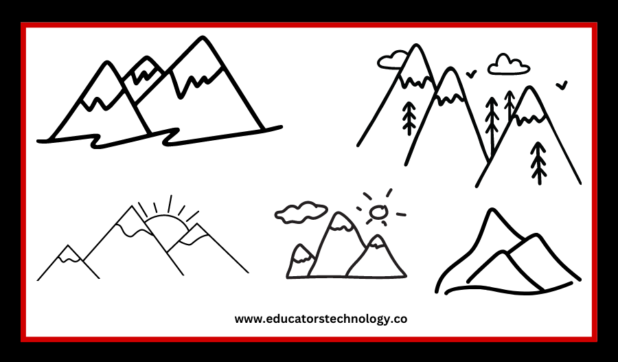 Mountains are a great way to add some texture and depth to your doodles. To draw them, start by making a triangle shape with curved lines and then add some peaks on the top. The final step is to add a few trees or bushes to make your mountain look more realistic.