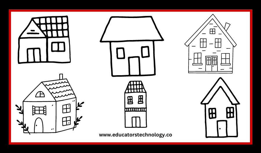 Houses are a great way to add some structure to your doodles. Like trees, they are simple and easy to draw: start by making a rectangle shape with curved lines, then add a roof and some windows. Once done, add a door to complete your house.