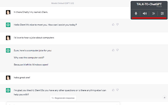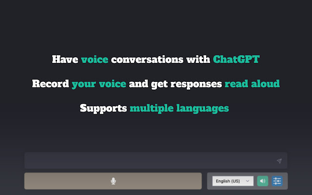 Talk to ChatGPT allows users to talk to ChatGPT through their microphone and hear its responses with a voice. It uses speech recognition and text-to-speech technologies from Google Chrome.