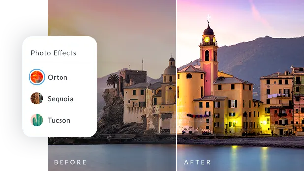 You can simply upload your image or start with a pre-designed professional looking template and customize it the way you want. You can add amazing effects, use AI photo enhancing features, add effects and filters and when you are done download and share your final product.