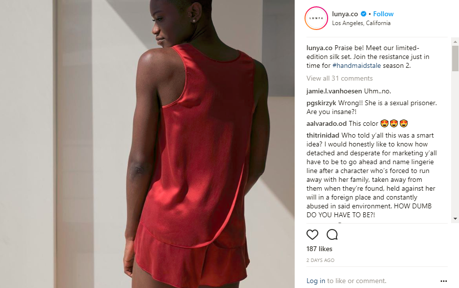 The results: Ok, so clever wordplay is a tenet of marketing. But, just because you can make a pun — Lunya's founder and CEO told Huffington Post that its Offred shade is play on how the color itself is off-red — it doesn't mean you should.
