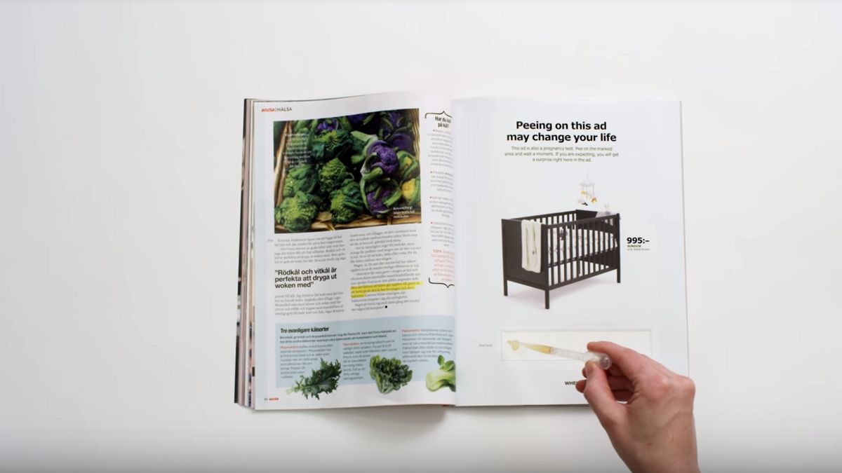 The homeware giant and its agency Åkestam Holst unveiled an unusual — yet undeniably attention-grabbing — ad for a baby crib in the Swedish women's magazine Amelia with a simple tagline: "peeing on this ad may change your life." The paper — developed with the help of Mercene Labs — is made from similar technology to a pregnancy test, and if you're with child, a discounted "family price" appears after a few moments of dripping urine on it, according to Adweek.