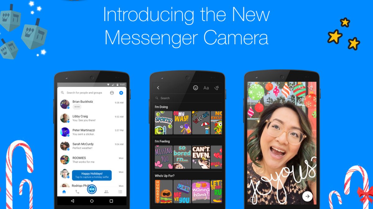 - Facebook announced in a company blog post that it’s introducing a new camera for its Messenger chat app that can filter virtual art, “masks” and holiday-themed 3-D effects over user selfies.