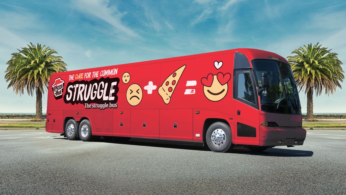 - Pizza Hut is looking to be the "Cure For The Common Struggle" with an experiential bus tour, according to a press release. The "struggle bus" is a term popularized by Gen Z and millennials used to describe the feeling of frustration caused by life's tasks and challenges.