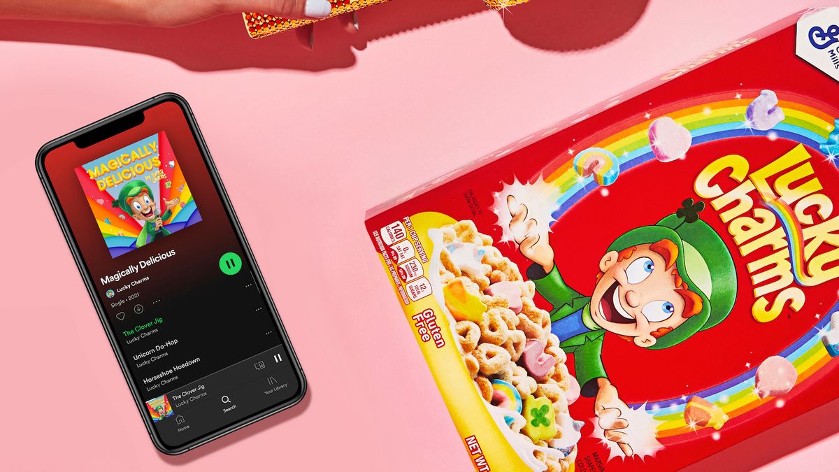 - General Mills cereal brand Lucky Charms released an eight-song album on Aug. 31 entitled "Magically Delicious," per details emailed to Marketing Dive. While it is available on all major streaming platforms, the album is being promoted exclusively on Spotify.