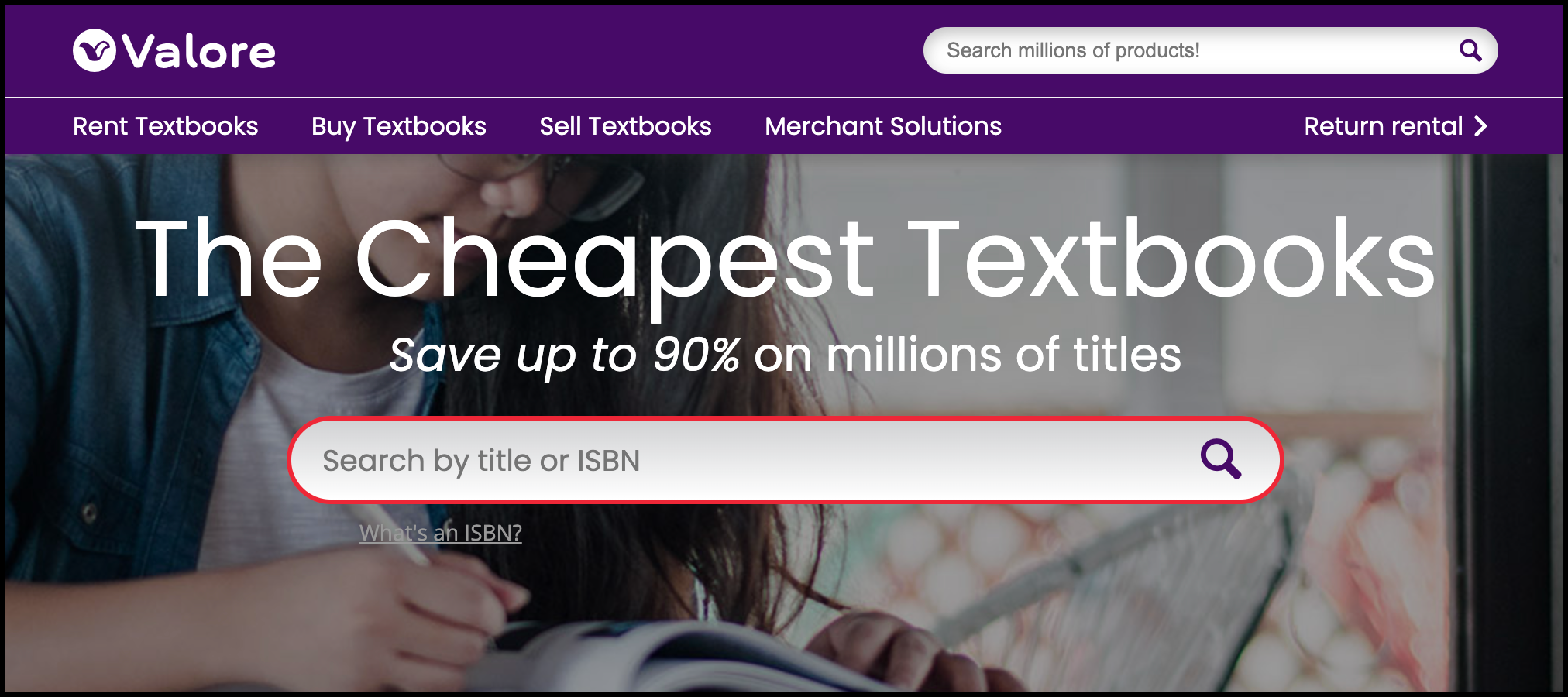 ValorBooks allows you to buy or rent textbooks online from over 18000 verified sellers and rental providers. The site also offers the possibility to sell your textbooks and make some bucks from your used course materials. ValoreBooks offers all textbook rentals with free return shipping.