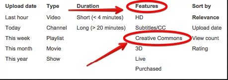 Run your search query on YouTube then in the first search result page, click on “filter” then choose Creative Commons from under “Features”: