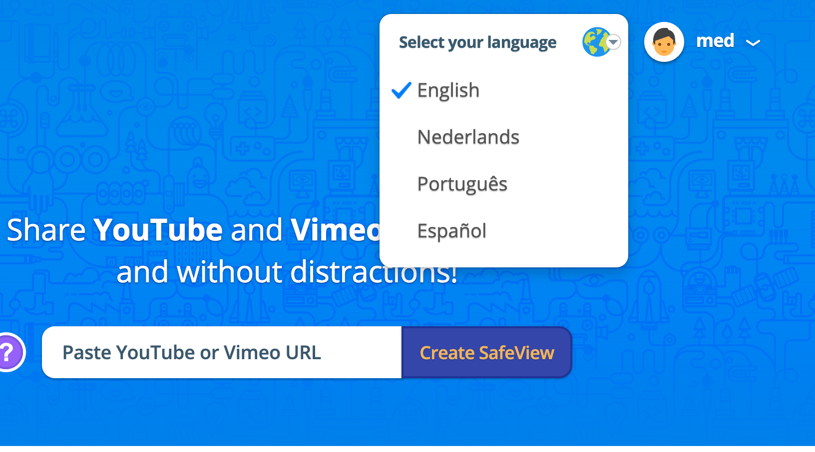 SafeShare TV is available in three more languages besides English: Nederlands, Portugues, and Spanish.