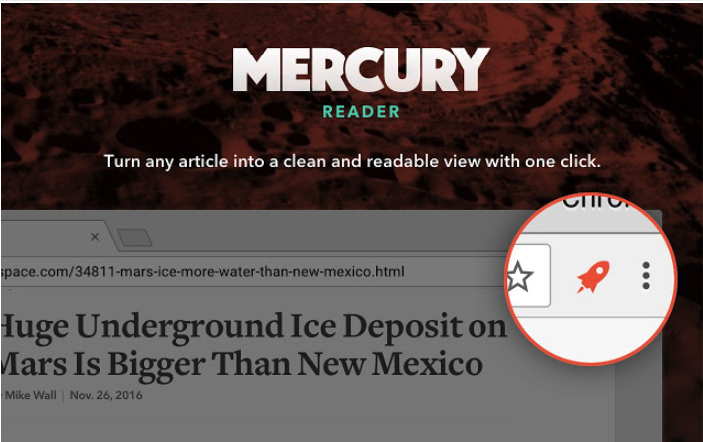 ‘The Mercury Reader extension for Chrome removes ads and distractions, leaving only text and images for a clean and consistent reading view on every site.’
