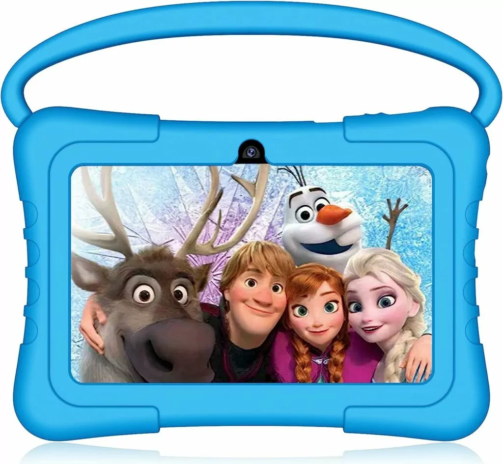 The Kunleba 7 Inch Kids Tablet is an Android tablet designed with children in mind. This tablet stands out for its eye-protection screen and parental controls, and it’s also compact and portable.