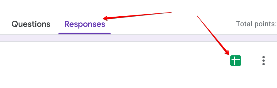 2- Click on ‘Responses’ located in the top then click on the spreadsheet’s green icon