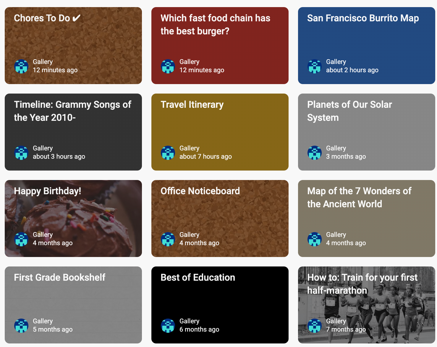Padlet Gallery hosts tons of sample padlets created by the user community. These are especially helpful to use to get inspirations and design ideas to try out on your own padlets. Also, note that Padlet does offer a feature called Remake which allows you to copy the design (or posts) of a padlet and use it as a template for your own work but you should make sure you respect the intellectual property of others and familiarize yourself with Padlet’s content policy before you use Remake.